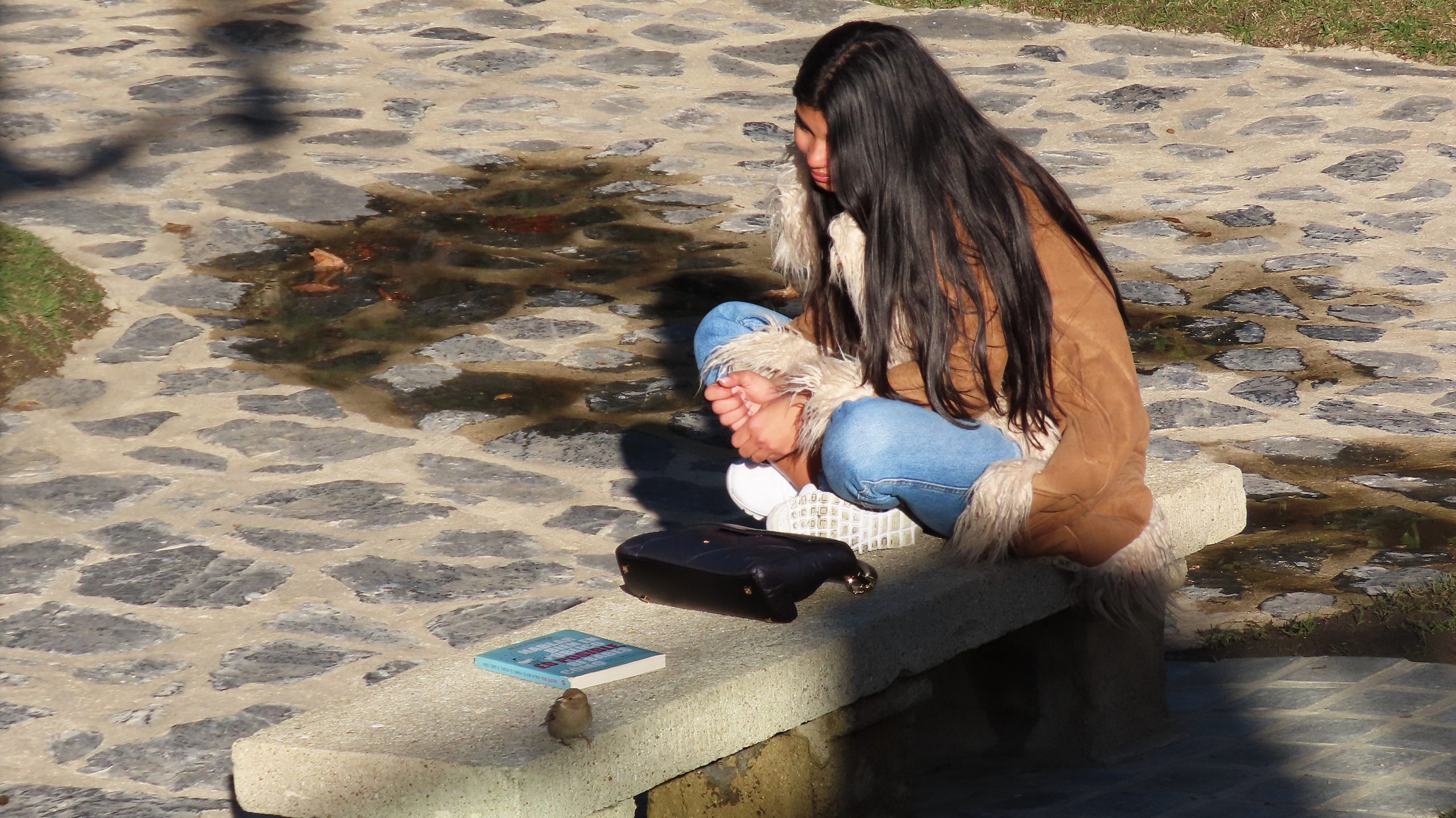 Colofón: hace pocos días, una chica soñaba a menos de un metro de un gorrión. Obtuve su permiso para publicar la maravillosa escena, cargada de metáforas y enternecedora de por sí. Tal vez no era una chica, sino una simbólica águila real que proyectaba su viaje hacia las altas montañas de la vida, con fuerza y determinación, cual pequeña avecilla que, mentalmente, se transforma en poderosa y magnífica, de forma sugerente y en el más puro silencio. Desde aquí agradezco su buena voluntad y actitud, con los mejores deseos.